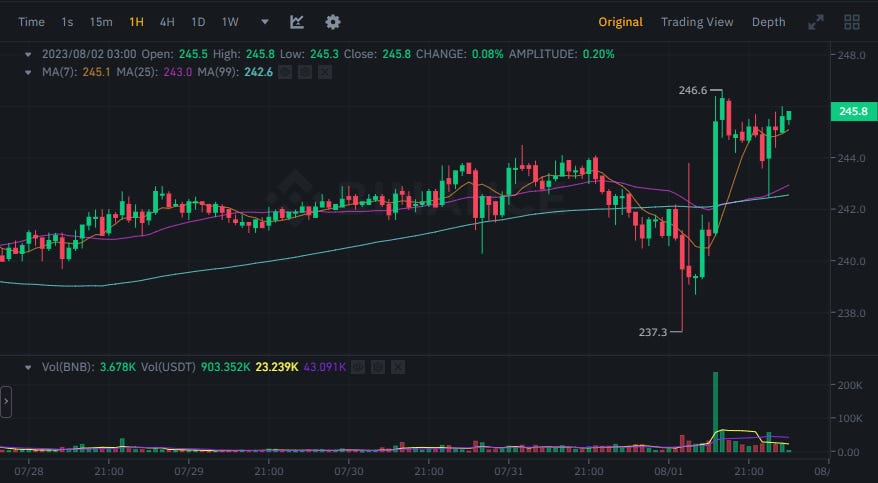 直近で大きく値を下げていたので大したことなかったです。特にBNB持ってなかったので恩恵を受けることもなくでした笑